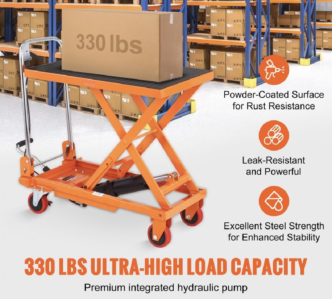 Altezza di Sollevamento 220-720 mm, Piattaforma Elevatore Manuale a Forbice Singola con 4 Ruote Cuscinetto Antiscivolo,